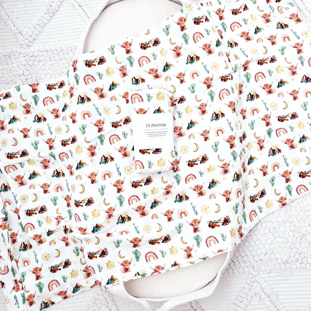 Lil Miimie Bamboo Muslin Swaddle – Highland Cow