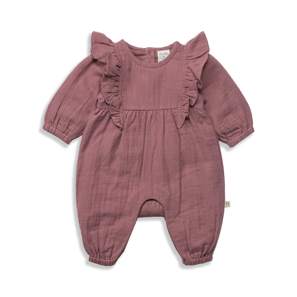Tiny Twig Long Sleeve Ruffle Playsuit – Rose