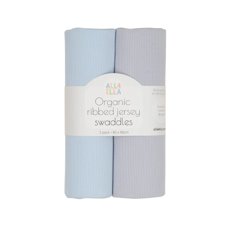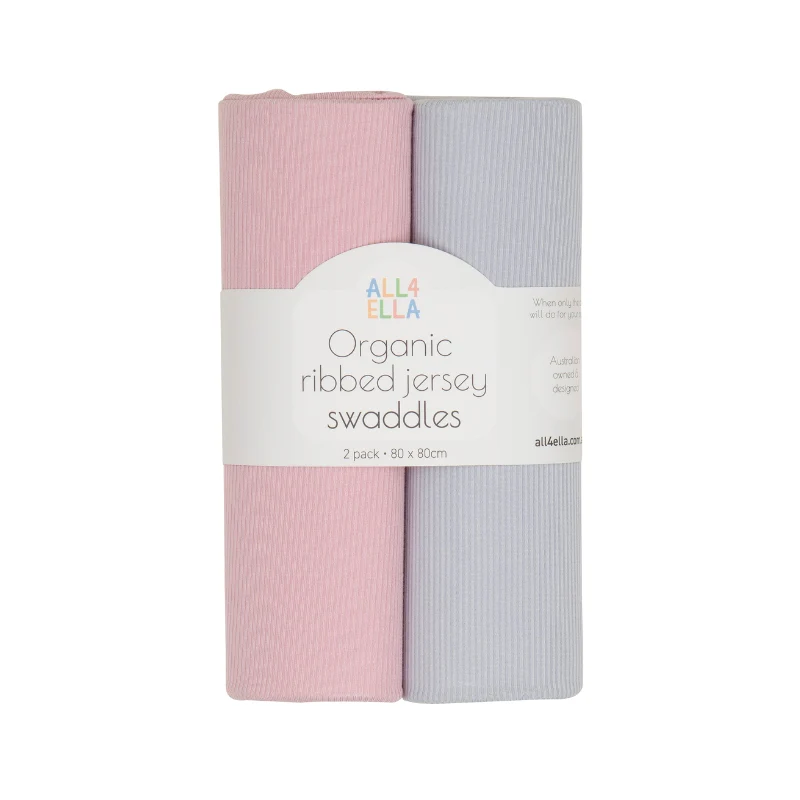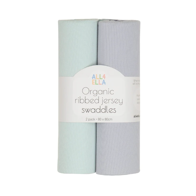 All4Ella Organic Ribbed Jersey Swaddle 2pk – Assorted Colours