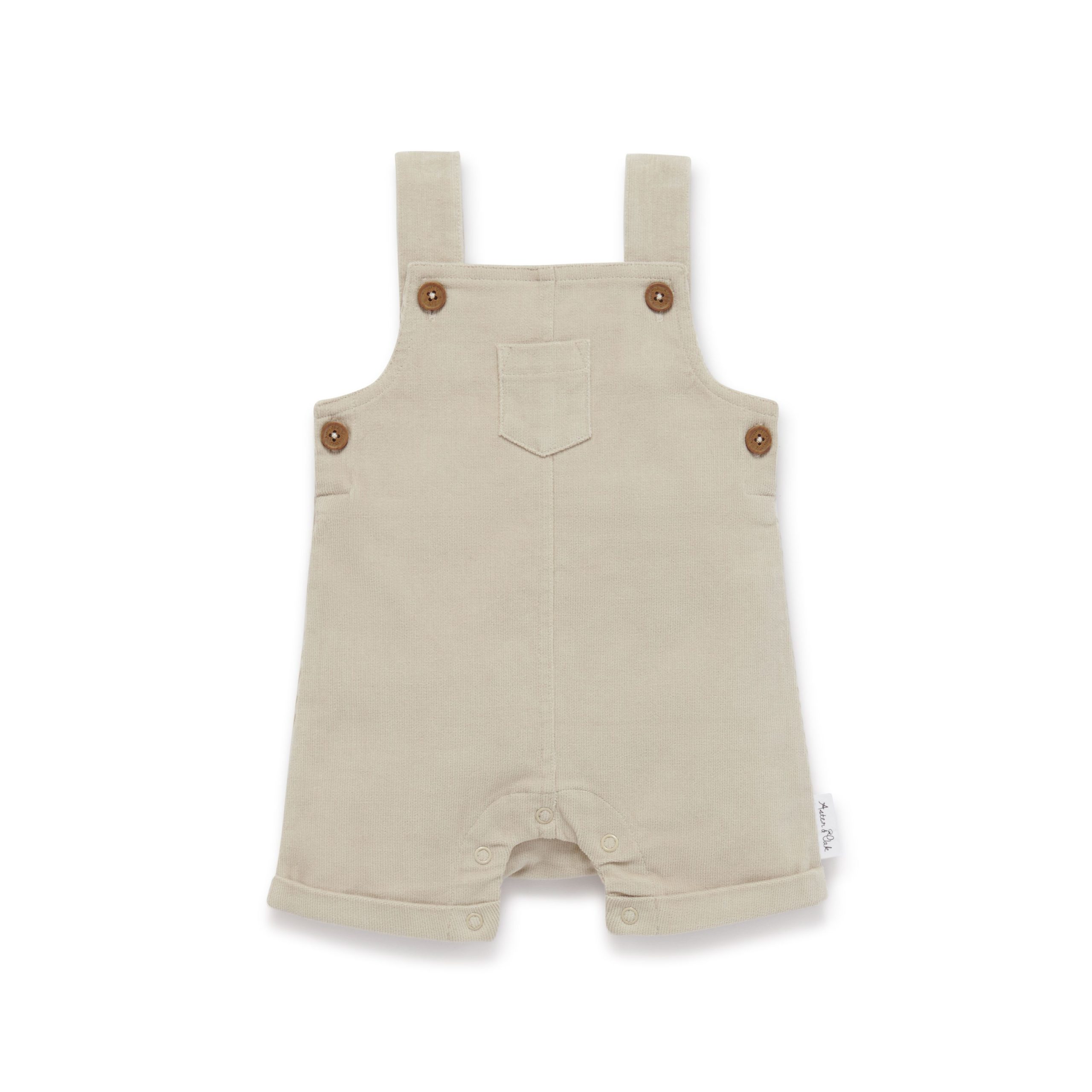 Made with GOTS certified organic cotton corduroy, these Sand Cord Overalls feature faux wood buttons, press buttons along the legs and a pocket to the front.