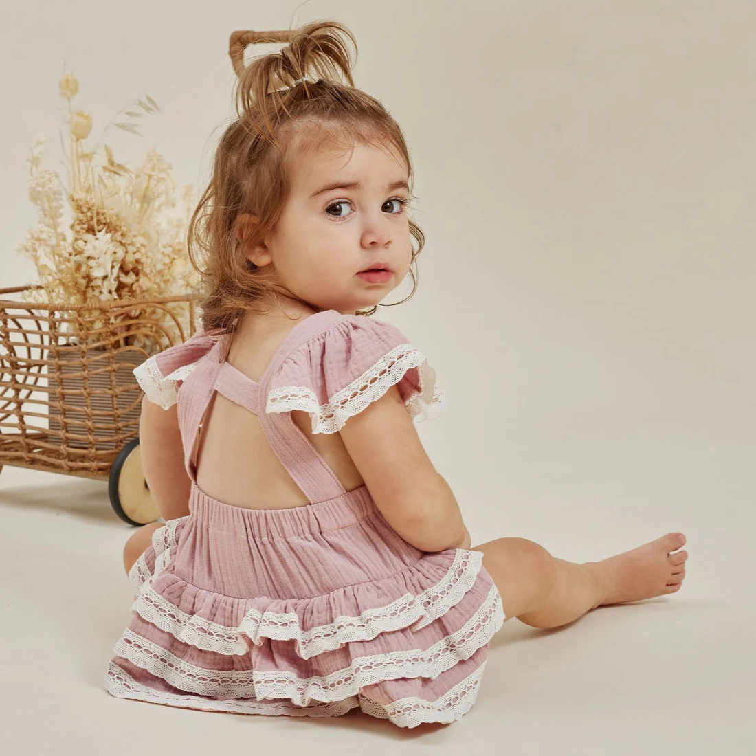Aster & Oak Muslin Ruffle Playsuit – Pink