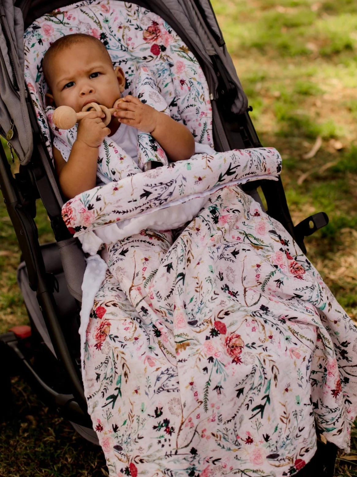 They are super snuggly, featuring 100% cotton fabric on one side and a soft minky dimple fabric on the other. Our blankets are lightweight and compact, simply roll one up and toss it into your nappy bag – and you’ll have an instant source of comfort, warmth, or a quick change mat whenever you need it!