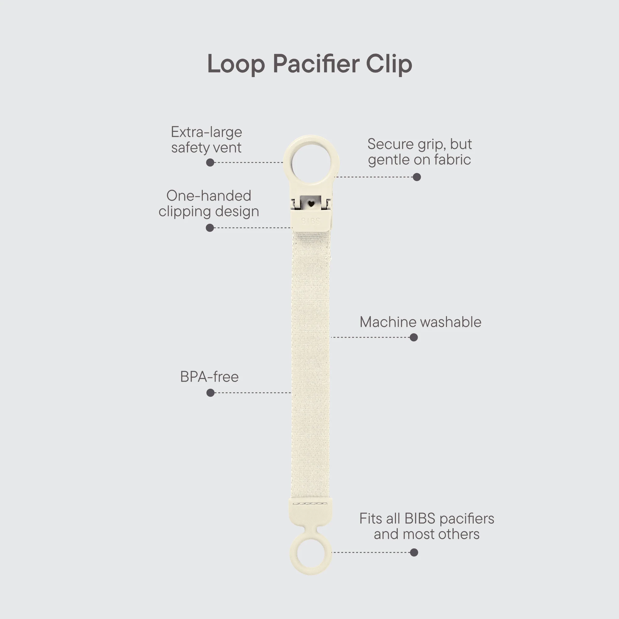 Just when you thought baby accessories couldn’t surprise you, along comes a fan-favorite essential with an updated look. Designed to keep pacifiers within reach and off the floor, it features a handy one-handed clipping mechanism and a flexible silicone ring that securely attaches to all BIBS pacifiers. Price is for the loop clip only, pacifier not included.