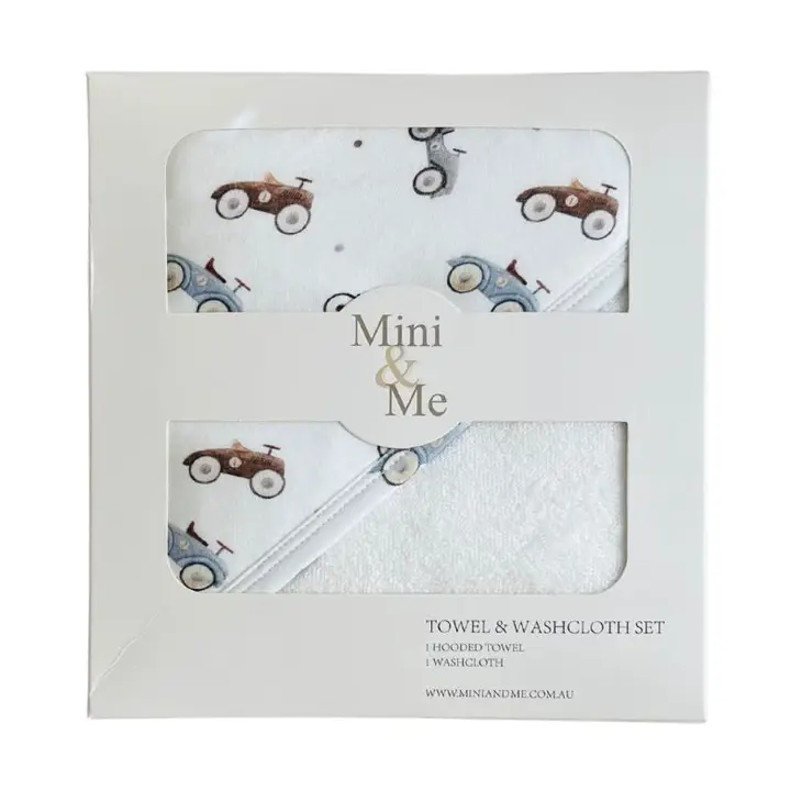 Mini & Me Hooded Towel & Wash Cloth Set Cars Features: