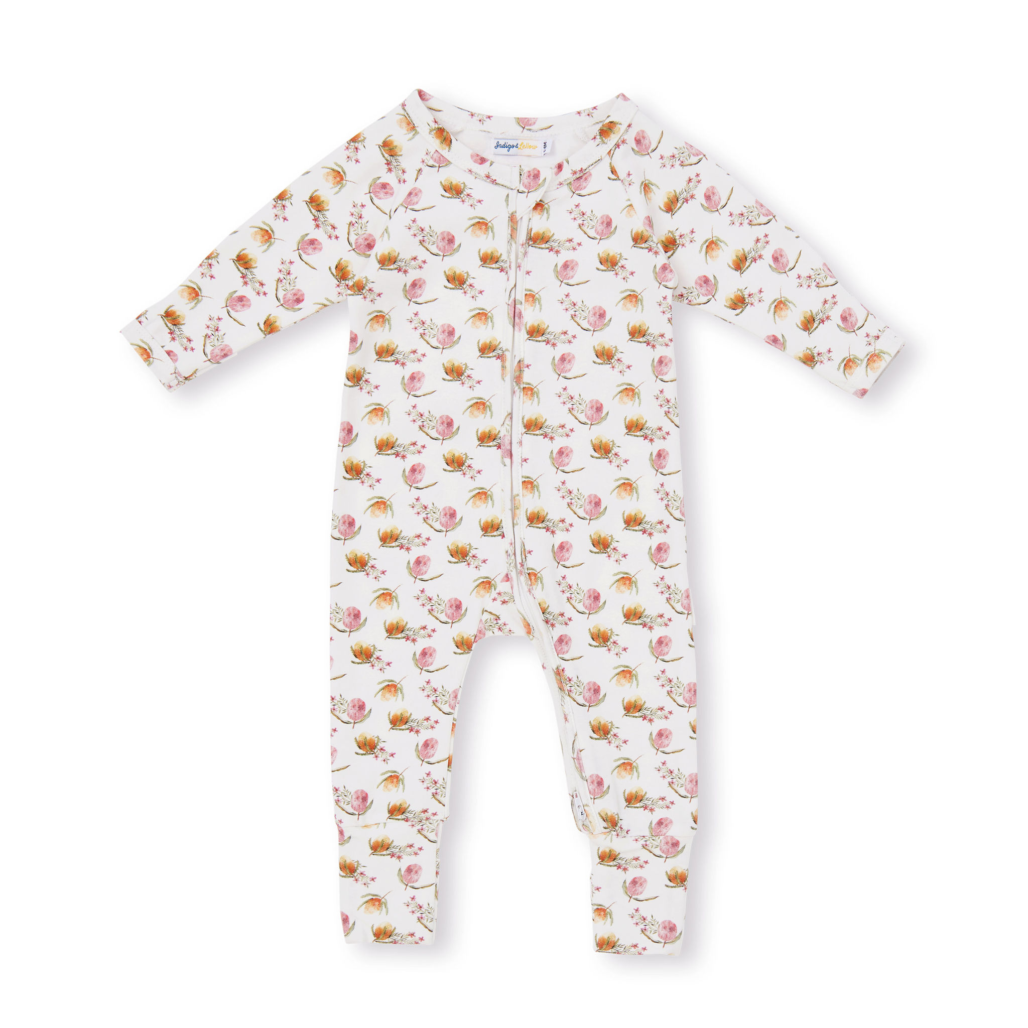 Introducing Indigo & Lellow award winning 100% GOTS certified organic zipsuit. This soft and cosy zipsuit is perfect for your baby’s delicate skin. The eco-friendly material provides both comfort and peace of mind as it moves with your baby throughout the day. With reversible cuffs on the hands and feet, little toes and hands are easily covered. The convenient 2-way zipper allows for quick and hassle-free nappy changes, while the zip cover protects your baby’s soft skin. Simply zip up or down for quick changes! Choose from a range of beautiful Australiana designs, featuring flora and fauna prints inspired from the beauty of the Australian bush.