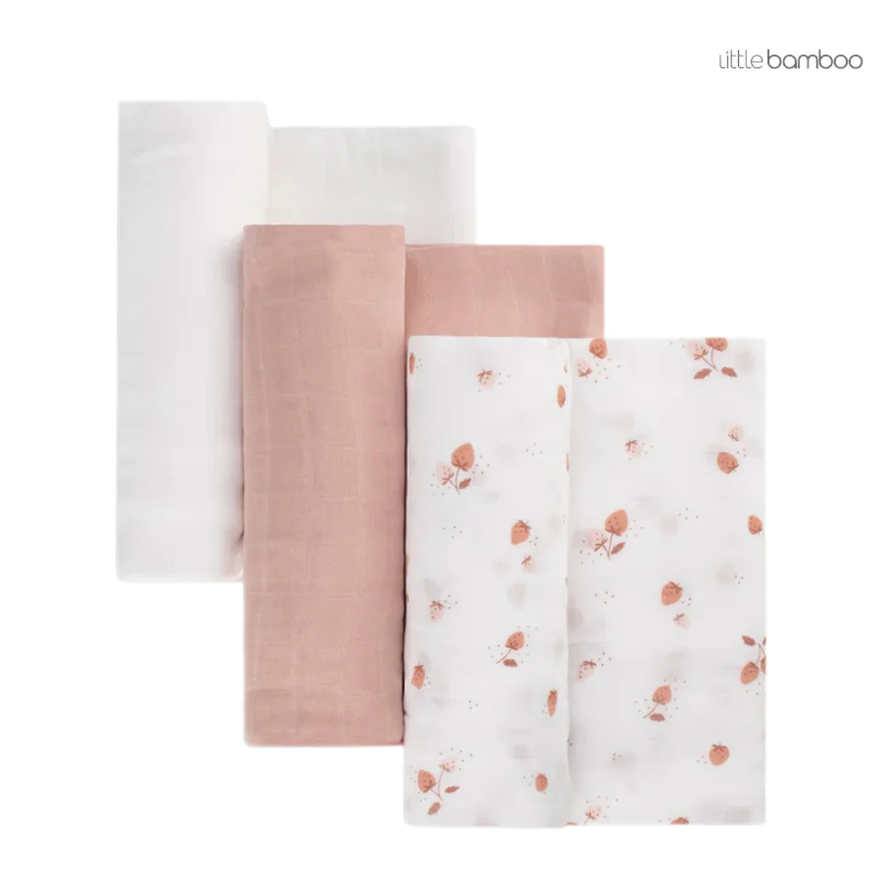 Little Bamboo 3pk Muslin Wrap – Dusty Rose