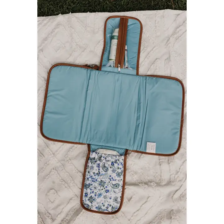 Available in OiOi’s stunning Paisley print, this compact clutch unfolds to reveal an extra-padded change mat, an elasticised storage pocket for nappies and a clear compartment for your wipes & creams. On the back of the clutch, is an easy-access zip pocket for any extras you need on the go (such as phone & keys).