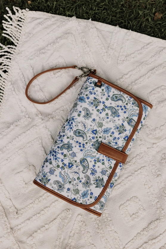 Combining function with beauty, this stylish clutch comes with a detachable wrist strap that can also be used to hang the mat neatly from your pram.