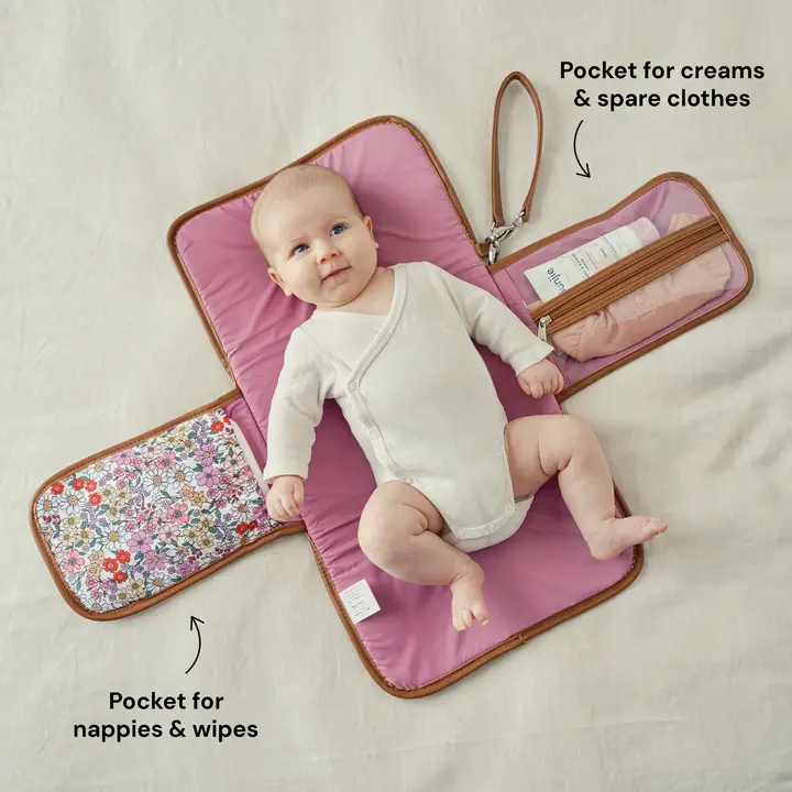 Our best-selling clutch folds out to reveal a padded mat to change baby’s nappy on the go, a storage pocket for your nappies and a zip compartment for wipes & creams.
