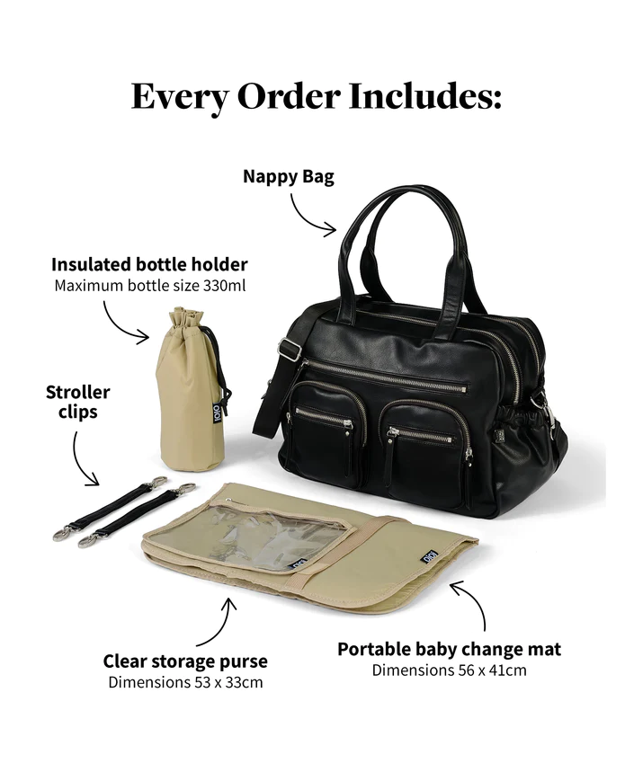 OiOi Faux Leather Carry All Nappy Bag – Black