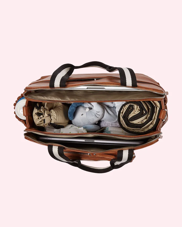 One of our most loved designs, this tote style nappy bag transitions seamlessly into a work tote with its elegant pocket layout that includes sleeves for a laptop and/or tablet.