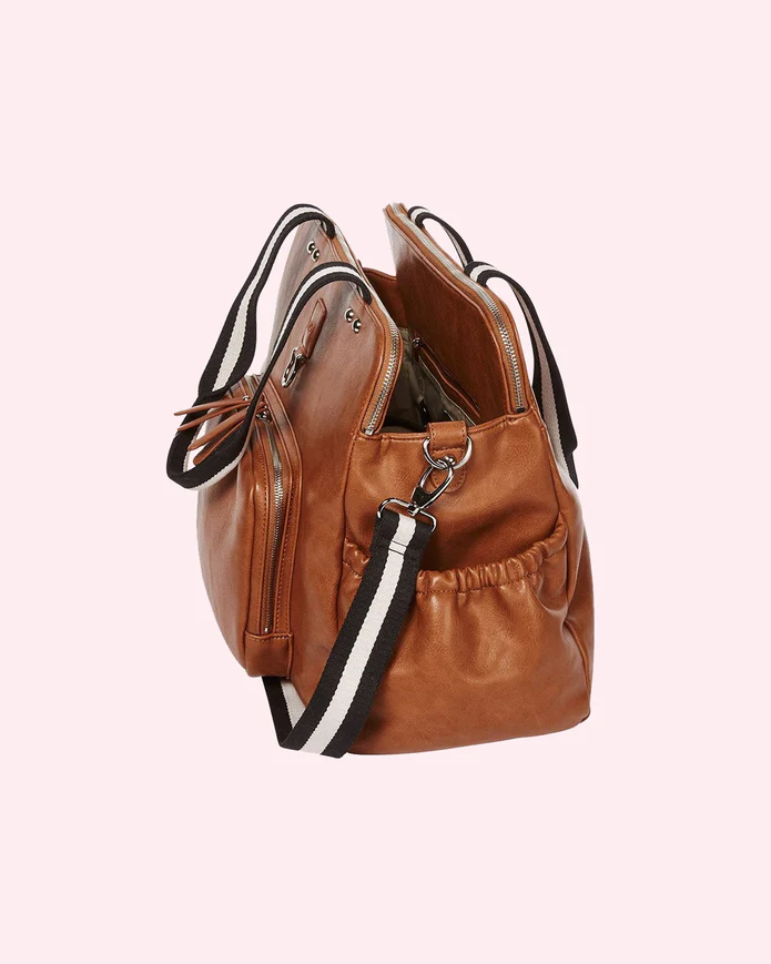 OiOi Faux Leather Triple Compartment Tote – Tan