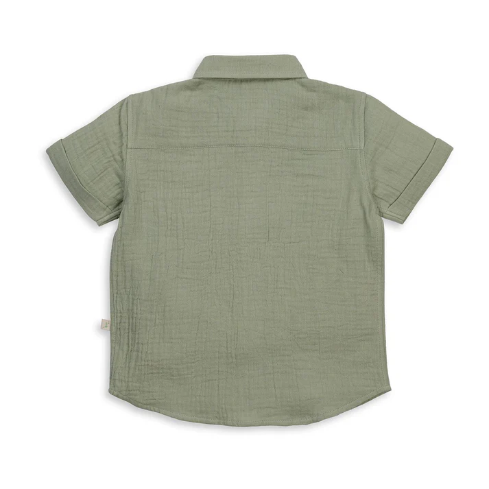 GOTS Certified Organic Cotton crinkle muslin fabric: Pure, safe, and sustainable for your little one. Natural looking button down shirt for easy wearing.