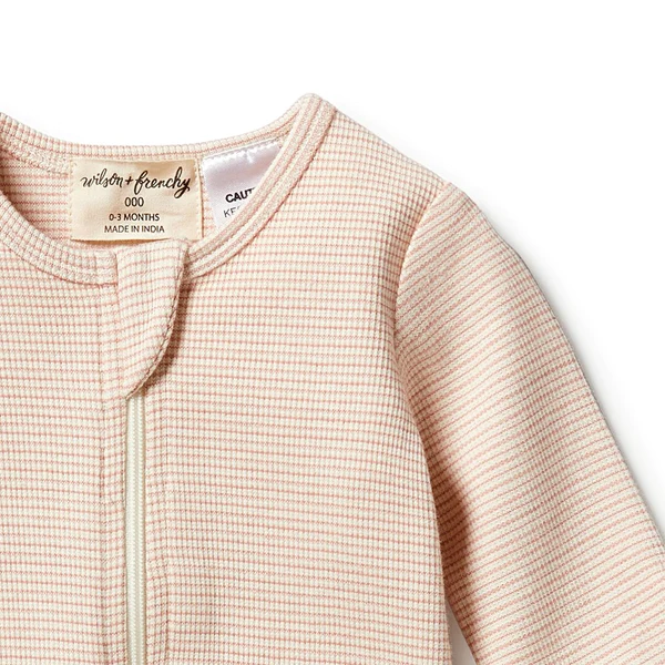 Wilson & Frenchy Stripe Rib Zipsuit with Feet – Rose
